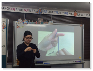 まず、日本語と日本手話を3ヵ月月間ならいました。手話も最初はなかなか覚えられませんでした。ろう者の友達との会話を通して、だんだん手話が身についてくると、楽しくなりました。正直なところ、日本語の習得はとても難しかったです。漢字もまったく分かりませんでしたが、毎週、レポートを書かなければならないので、一生懸命勉強しました。今は、漢字は面白いなと思います。