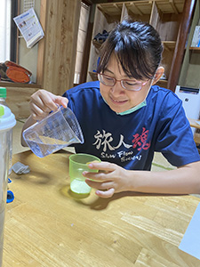 私は6時におきてじゅんびをしてすなはまでたいをこをしました。すなはまでたいそうをいまいた。おさごはんをとたべ「しらすちやづけ」をたべておわったあとはけかたうをしました。9時におおすみじょうねんしぜんのいえへいきました。かれーをつくり「ぐるーぷいにわかれ」かれー、おれんじ、をたべました。かたうけをして13時どっじびーであそびました。私たちはデフキッズとくるまにのってかえりました。