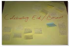 We can make difference in our community by initiating small steps like planting, cleaning our street, making environment accessible etc. It is all about having vision and commitment to do something as an active member of the society. Then forms were distributed among the participants and lunch was served. Mr. Amanat being late after lunch for the next session was punished on public demand and he had to perform dance and it served as energizer for the next session too. Another interesting activity was observed where participants were divided into 4 Groups and they had to write about 4 different situations i.e Eid/ Basant Celebration, Long March, Reunion Party and Presentation in front of Boss , the groups had to work in rotating manner and fill each chart with their opinion about the given situations. The purpose of the said activity was to make participants think and express their views what they think about the situations and how they celebrate or manage these with their resources.